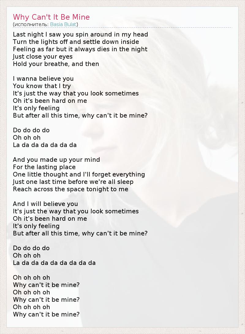 А как ты думаешь, о чем песня "Why Can't It Be Mine" ?