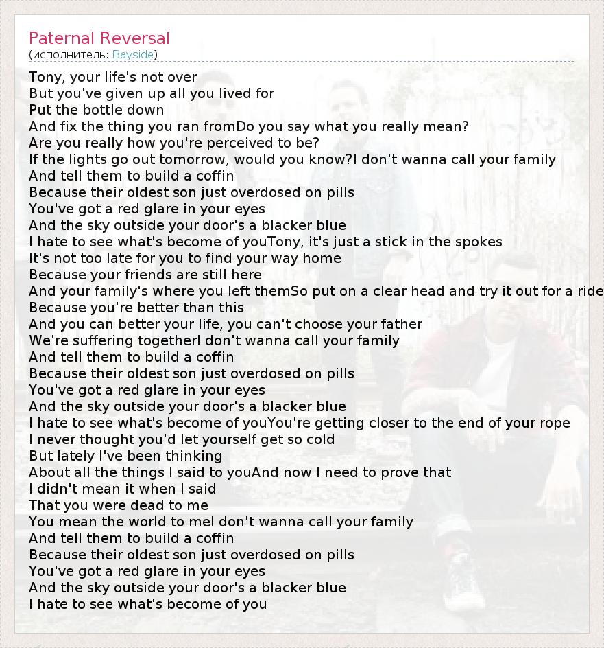А как ты думаешь, о чем песня "Paternal Reversal" ?