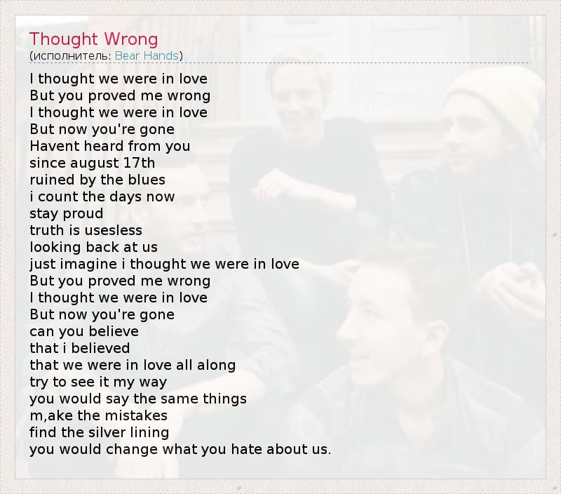 А как ты думаешь, о чем песня "Thought Wrong" ?