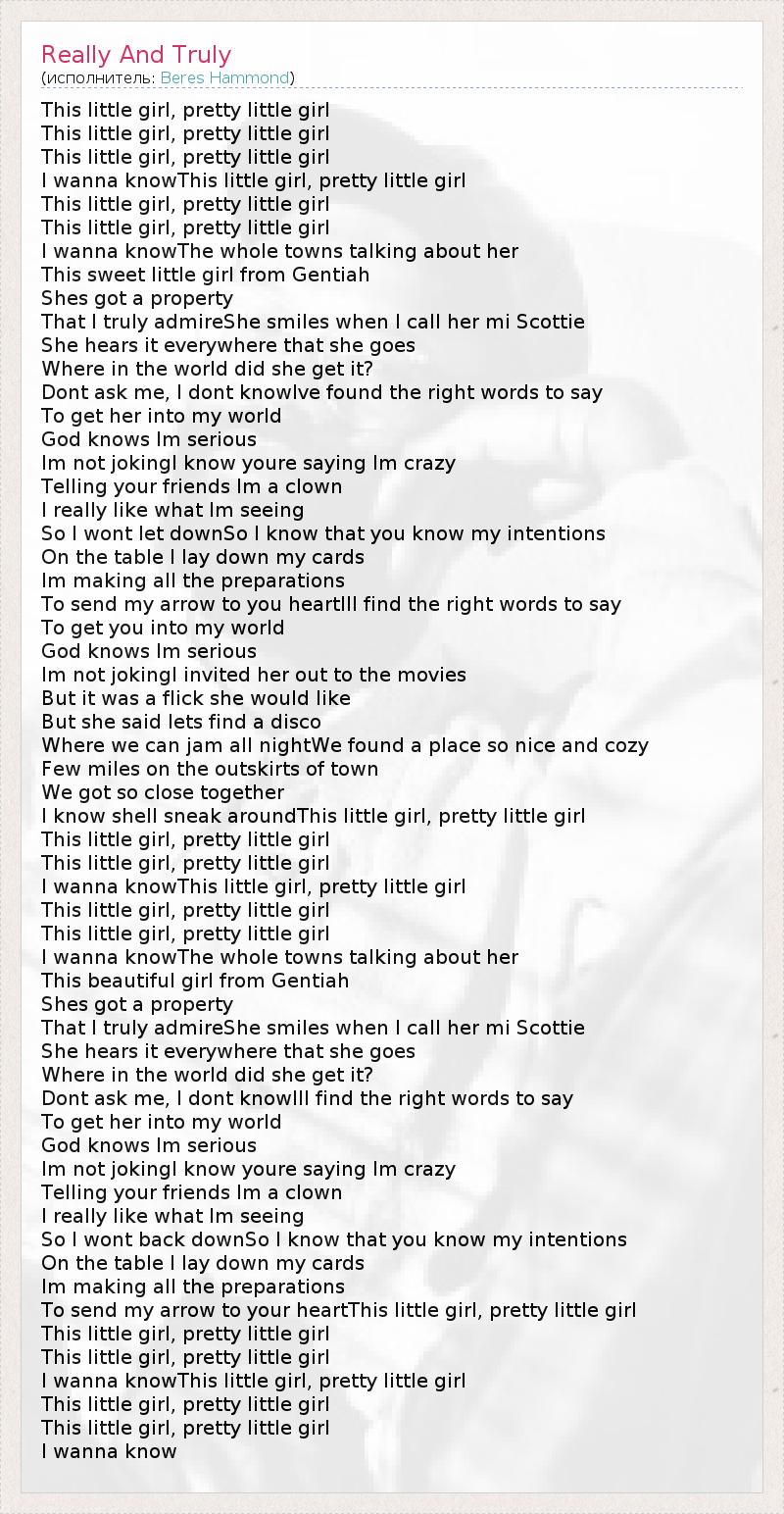 А как ты думаешь, о чем песня "Really And Truly" ?