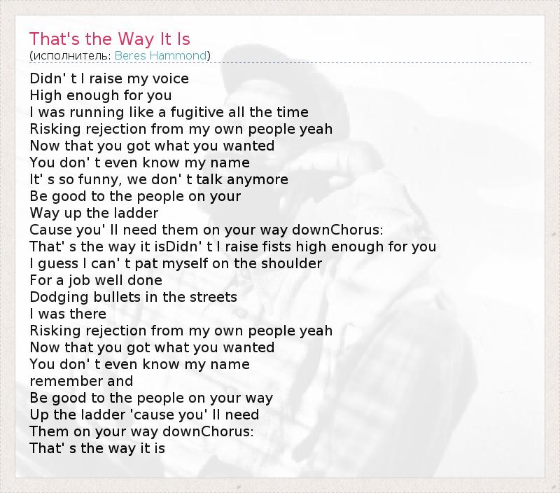 А как ты думаешь, о чем песня "That's the Way It Is" ?