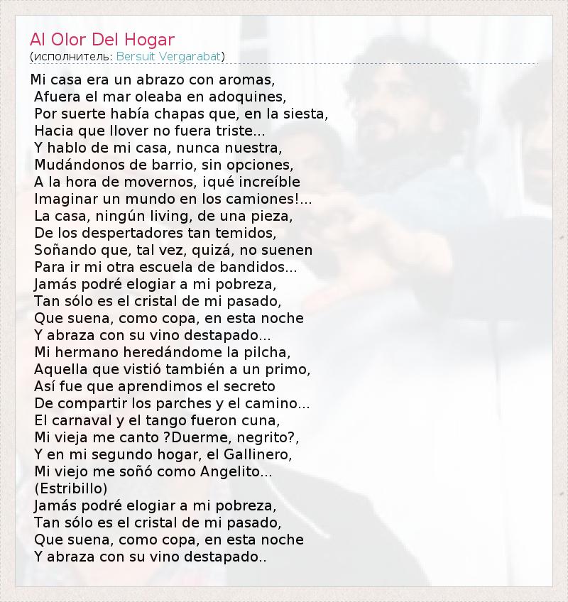А как ты думаешь, о чем песня "Al Olor Del Hogar" ?