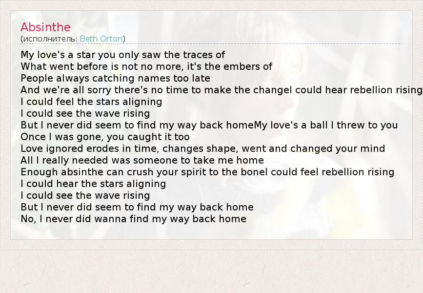 А как ты думаешь, о чем песня "Absinthe" ?