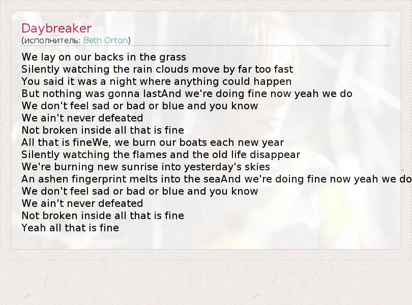 А как ты думаешь, о чем песня "Daybreaker" ?