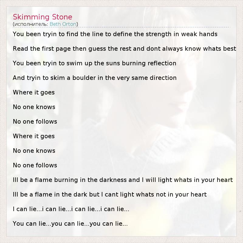 А как ты думаешь, о чем песня "Skimming Stone" ?