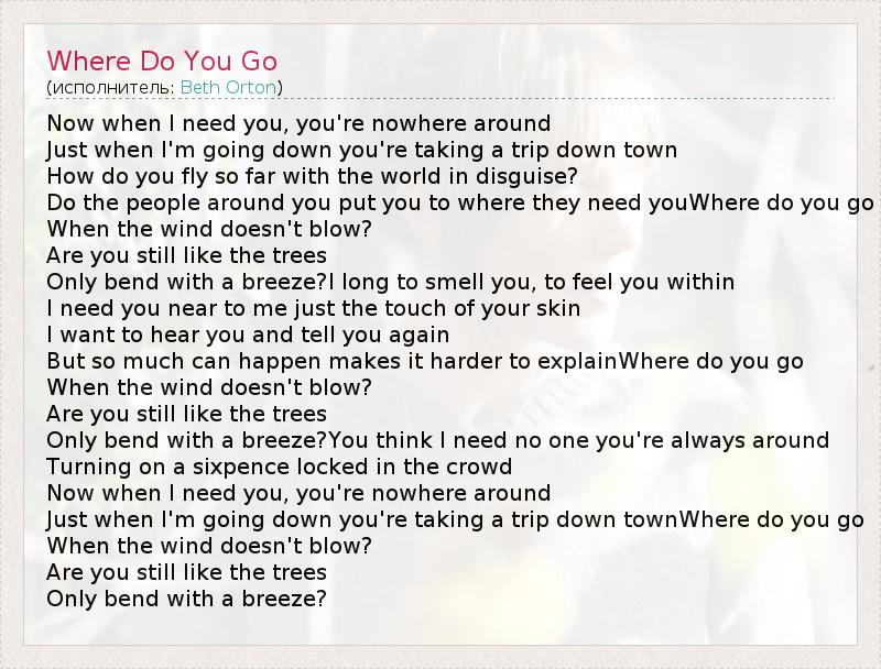 А как ты думаешь, о чем песня "Where Do You Go" ?