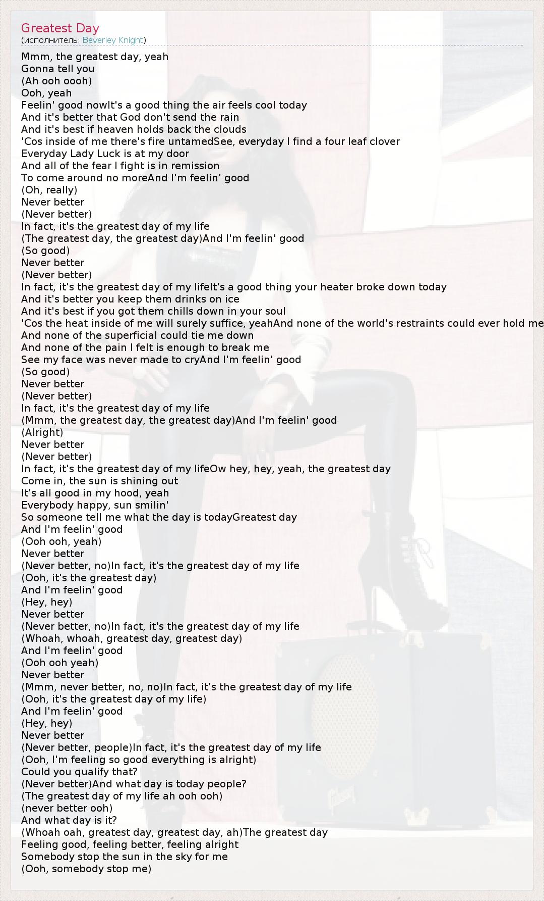 А как ты думаешь, о чем песня "Greatest Day" ?