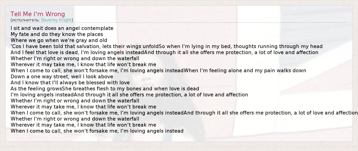А как ты думаешь, о чем песня "Tell Me I'm Wrong" ?