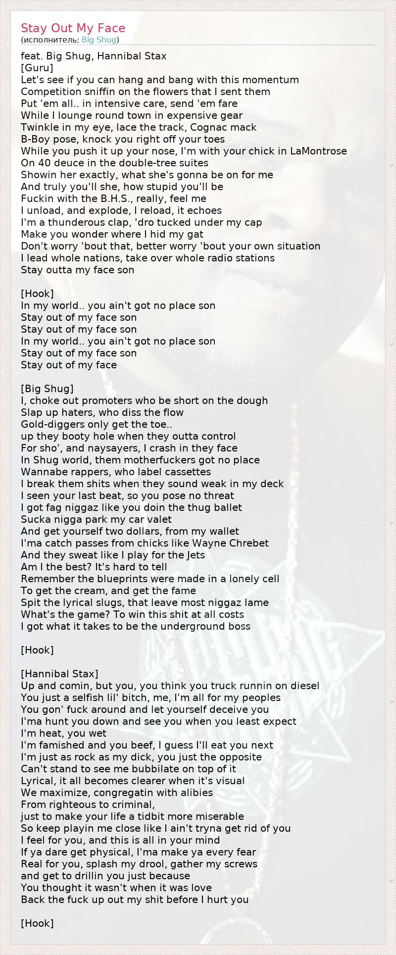 А как ты думаешь, о чем песня "Stay Out My Face" ?