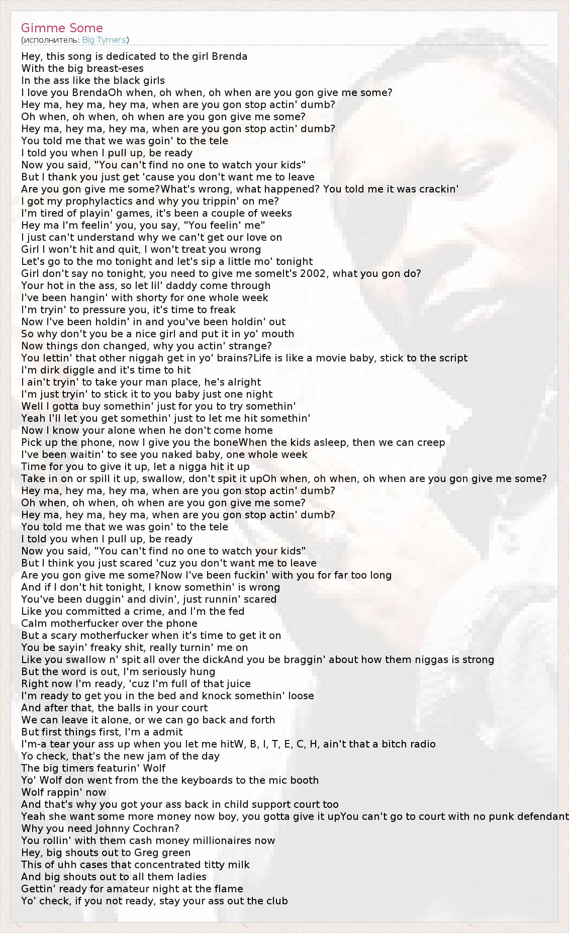 А как ты думаешь, о чем песня "Gimme Some" ?