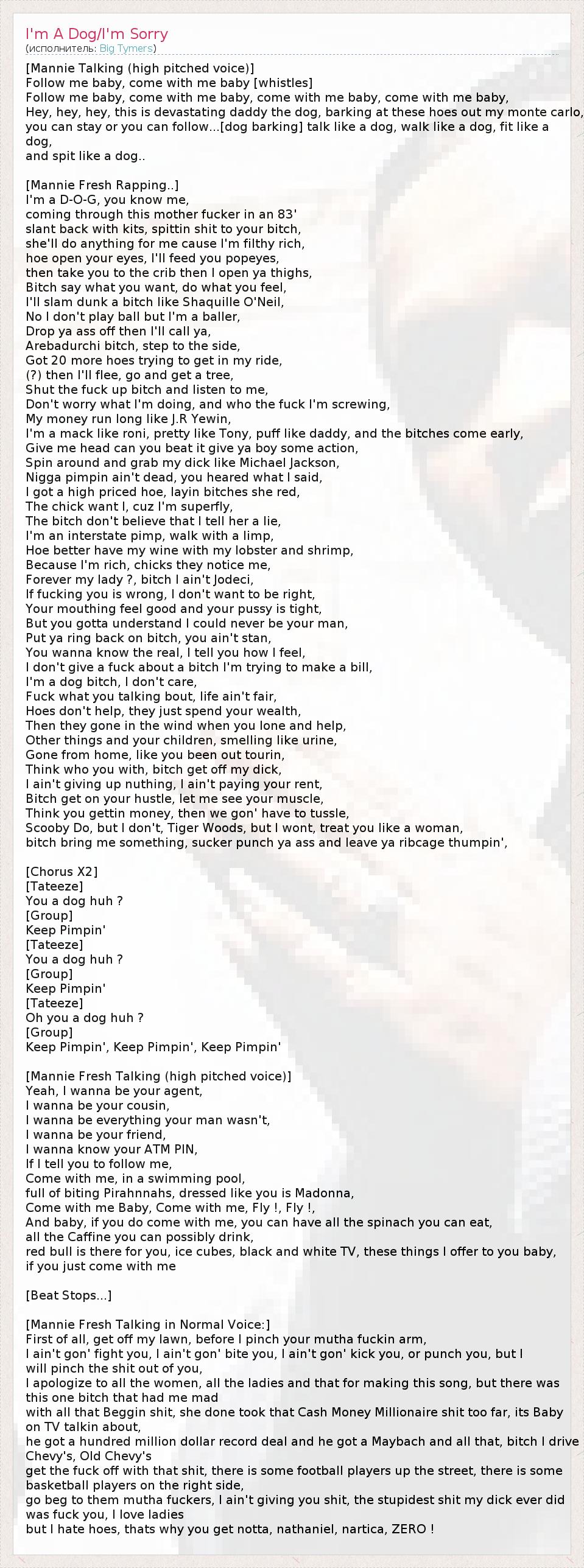 А как ты думаешь, о чем песня "I'm A Dog/I'm Sorry" ?