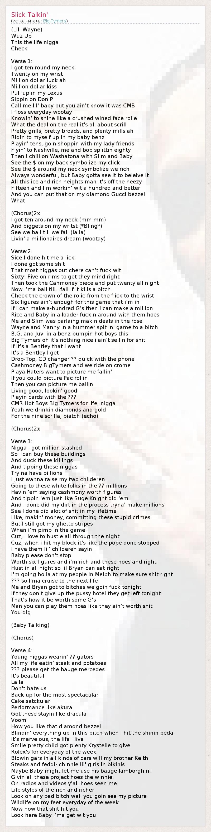 А как ты думаешь, о чем песня "Slick Talkin'" ?