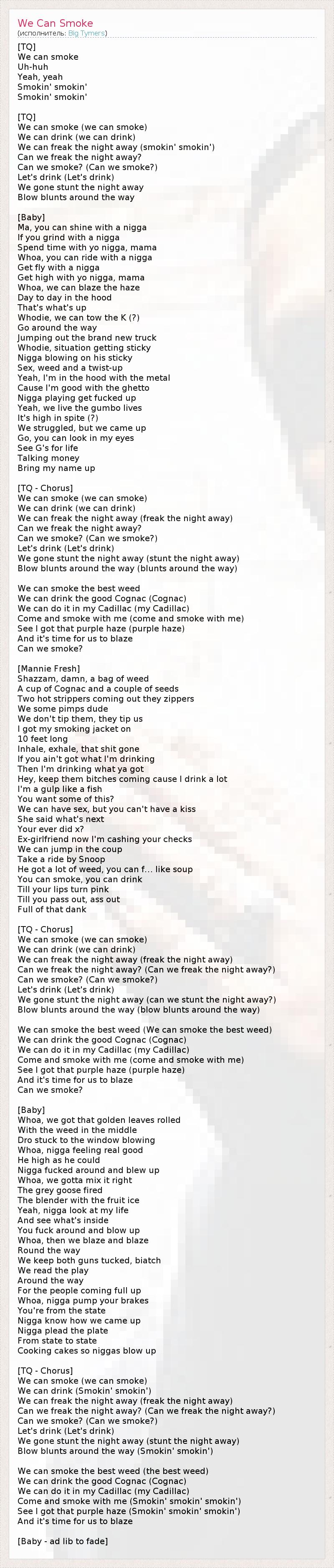 А как ты думаешь, о чем песня "We Can Smoke" ?