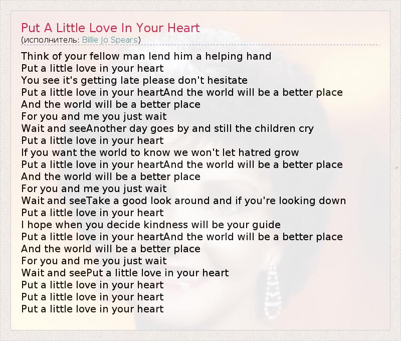 А как ты думаешь, о чем песня "Put A Little Love In Your Heart" ?