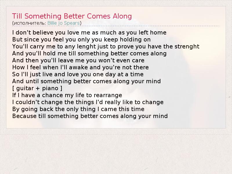 ГлавнаяИсполнителиBillie Jo SpearsTill Something Better Comes Along