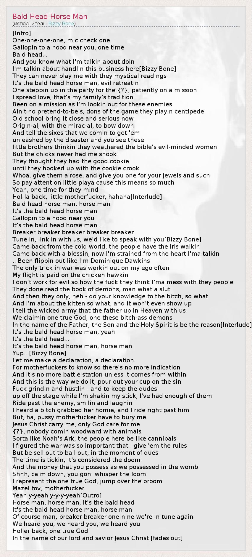 А как ты думаешь, о чем песня "Bald Head Horse Man" ?