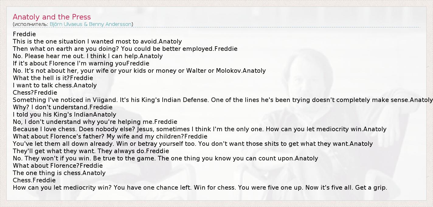 I want to talk chess.Anatoly