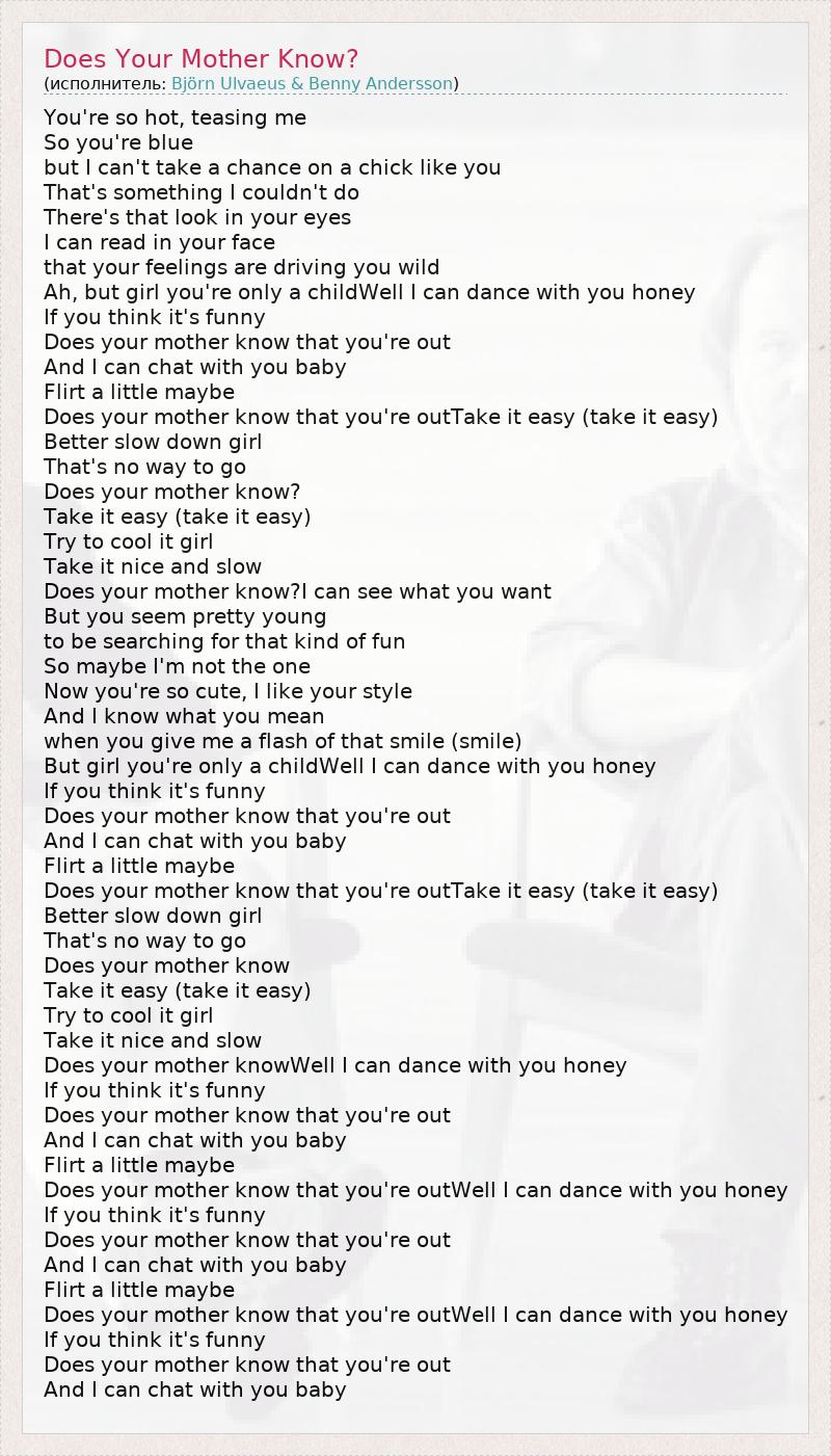А как ты думаешь, о чем песня "Does Your Mother Know?" ?