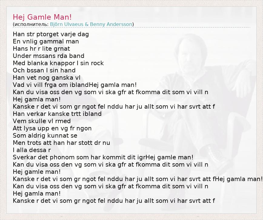 Kanske r det vi som gr ngot fel nddu har ju allt som vi har svrt att fHej gamla man!