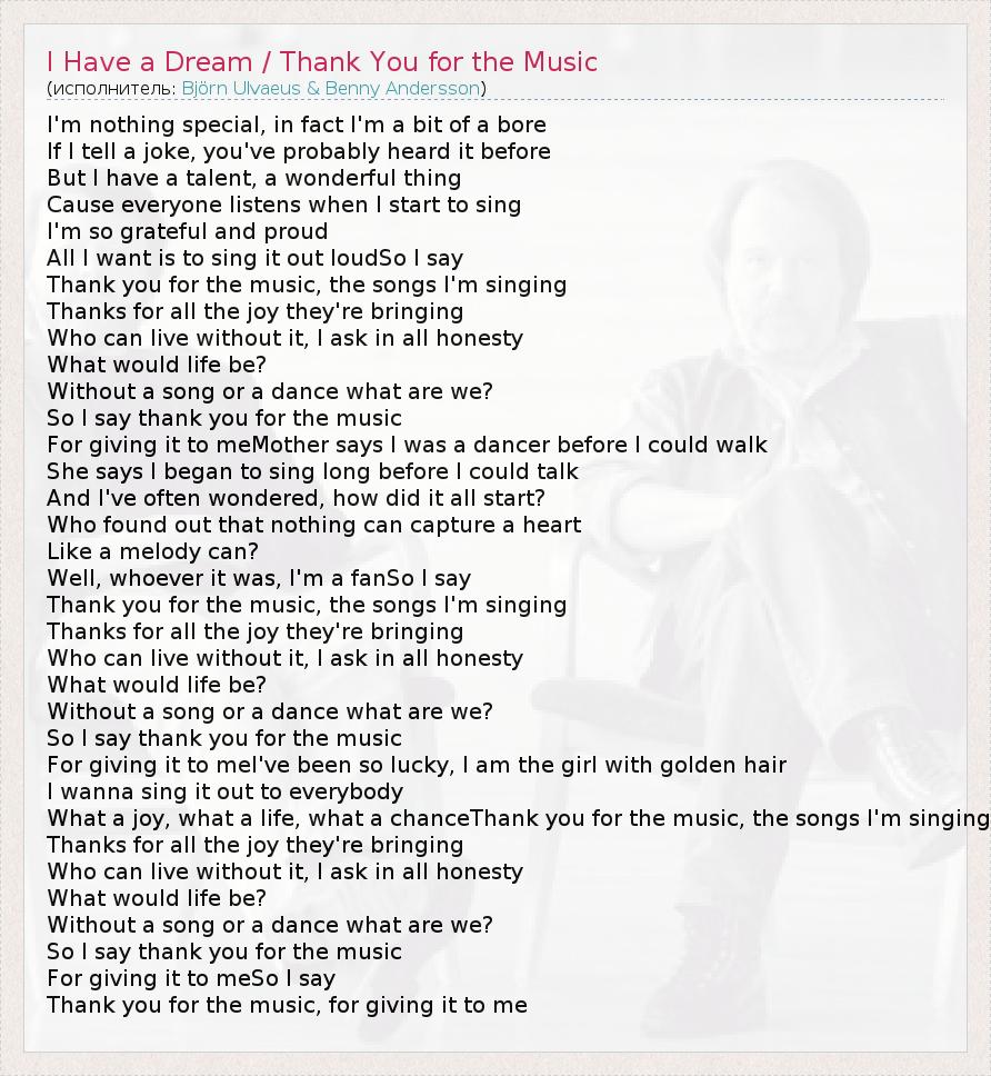 А как ты думаешь, о чем песня "I Have a Dream / Thank You for the Music" ?