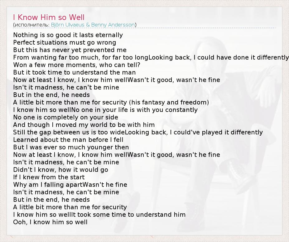 А как ты думаешь, о чем песня "I Know Him so Well" ?