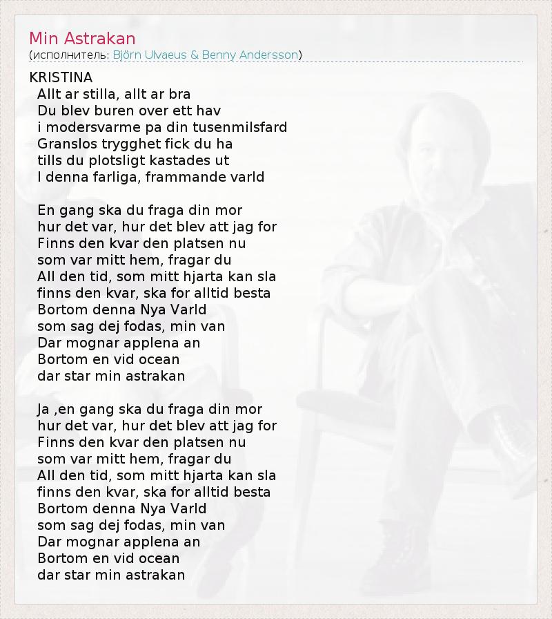 А как ты думаешь, о чем песня "Min Astrakan" ?