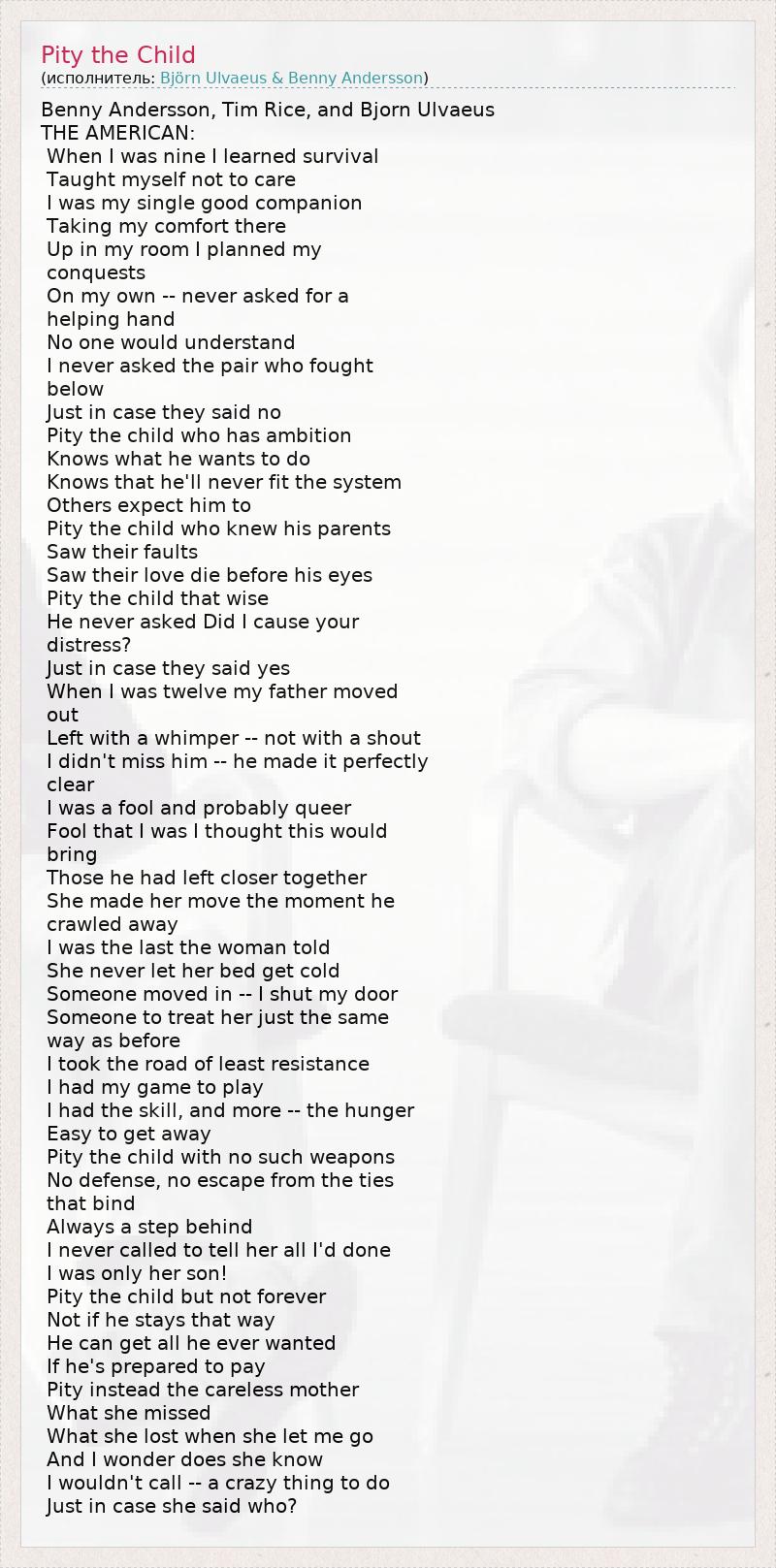 А как ты думаешь, о чем песня "Pity the Child" ?