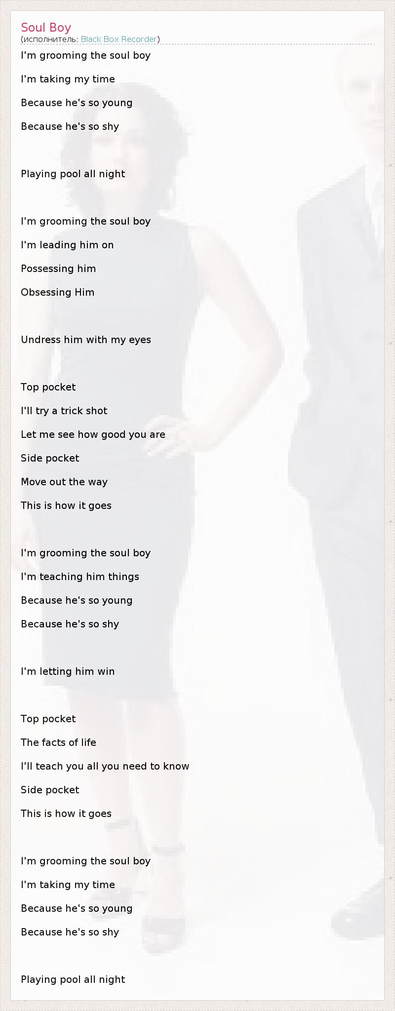 А как ты думаешь, о чем песня "Soul Boy" ?