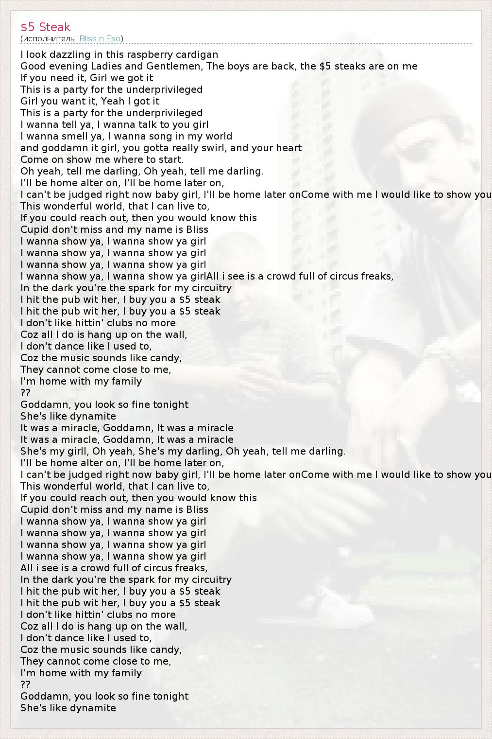 А как ты думаешь, о чем песня "$5 Steak" ?