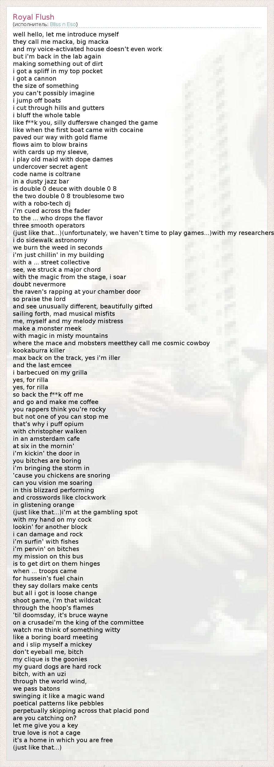 А как ты думаешь, о чем песня "Royal Flush" ?