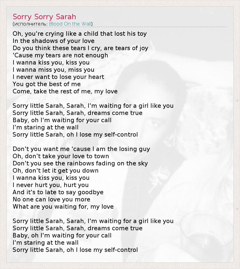Прости, маленькая Сара, Сара, мне нужна такая как ты,