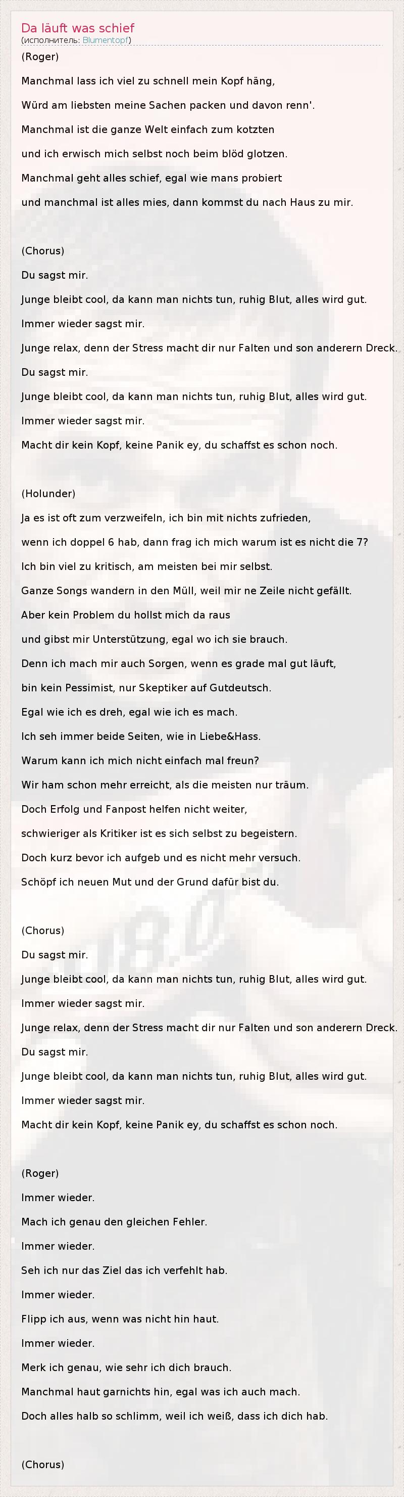 А как ты думаешь, о чем песня "Da läuft was schief" ?