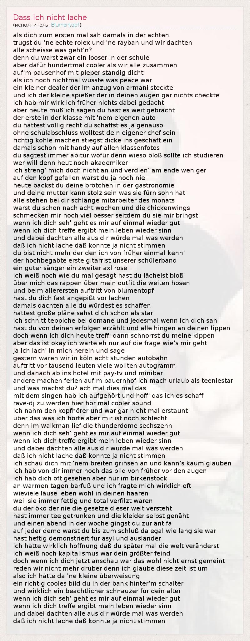 А как ты думаешь, о чем песня "Dass ich nicht lache" ?