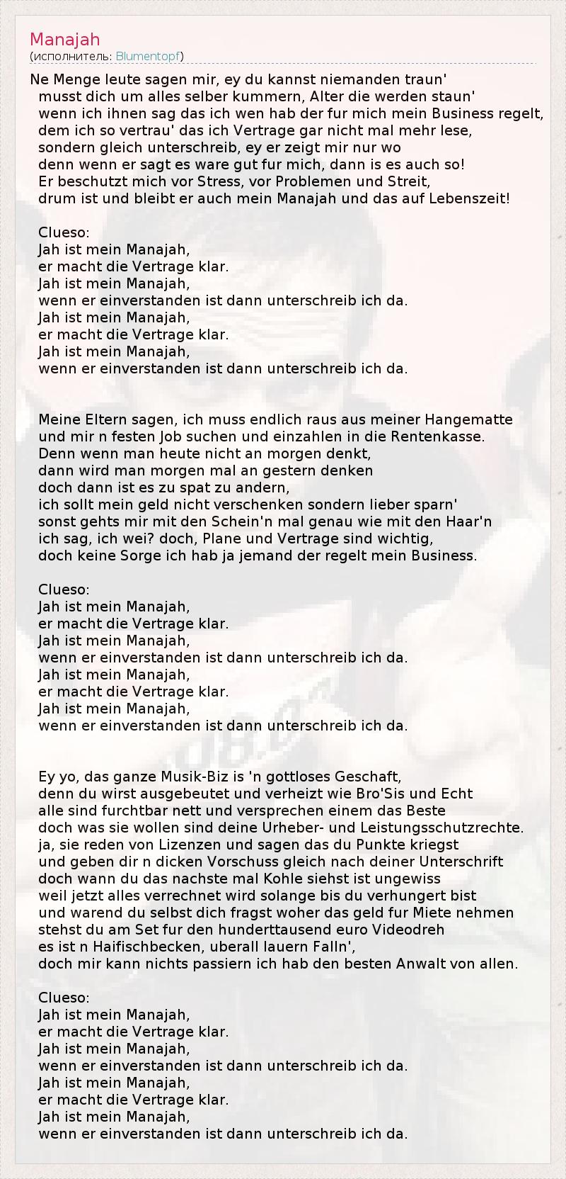 doch keine Sorge ich hab ja jemand der regelt mein Business.