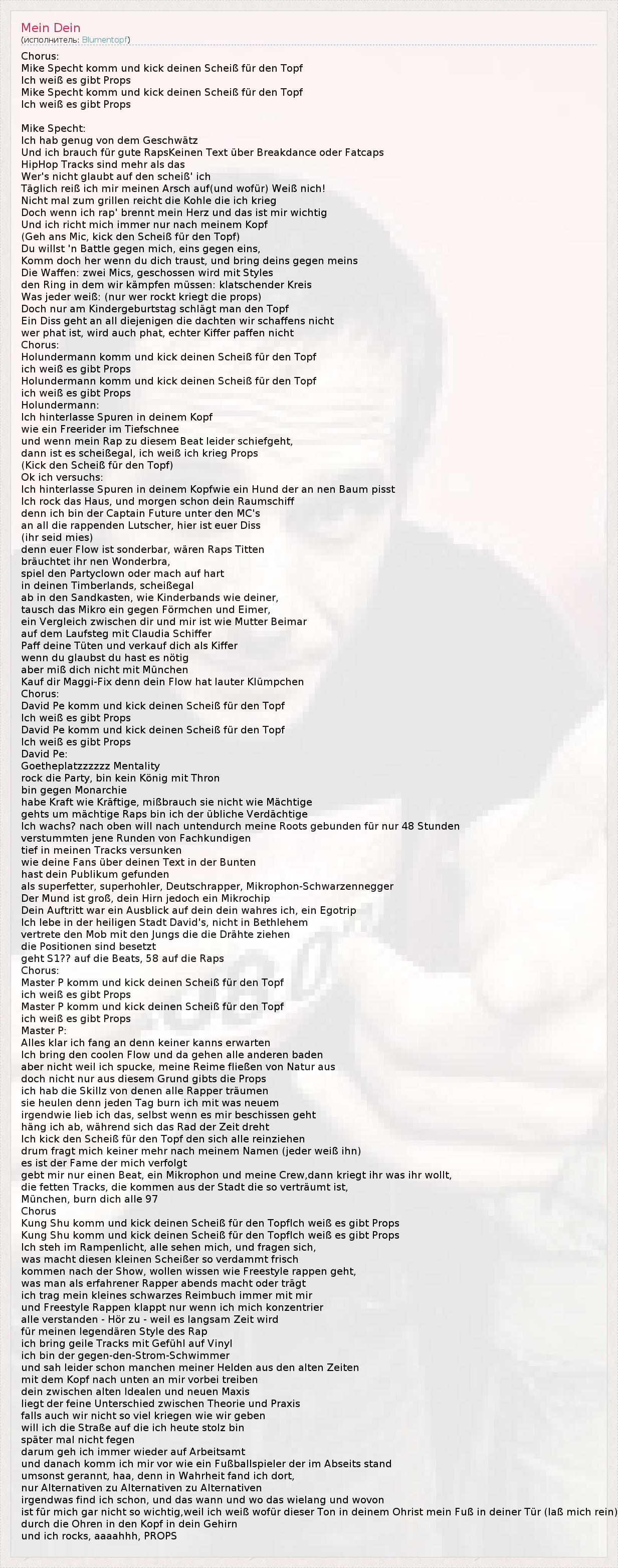Und ich brauch für gute RapsKeinen Text über Breakdance oder Fatcaps