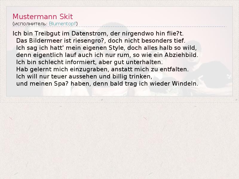 А как ты думаешь, о чем песня "Mustermann Skit" ?