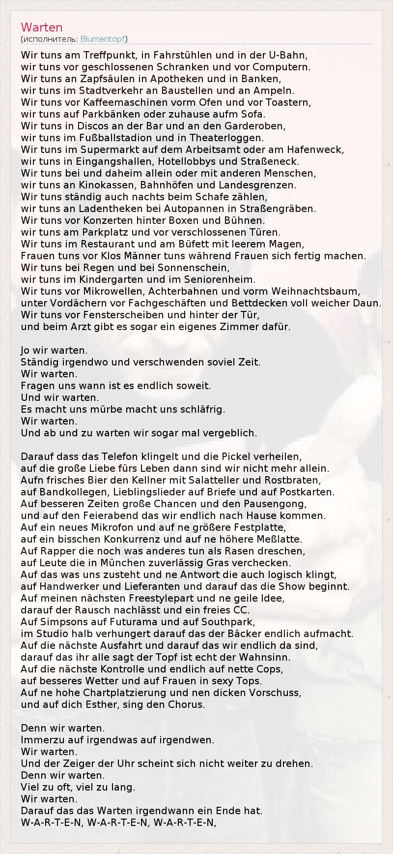 Darauf дас дас Warten irgendwann Эйн Ende шляпа.