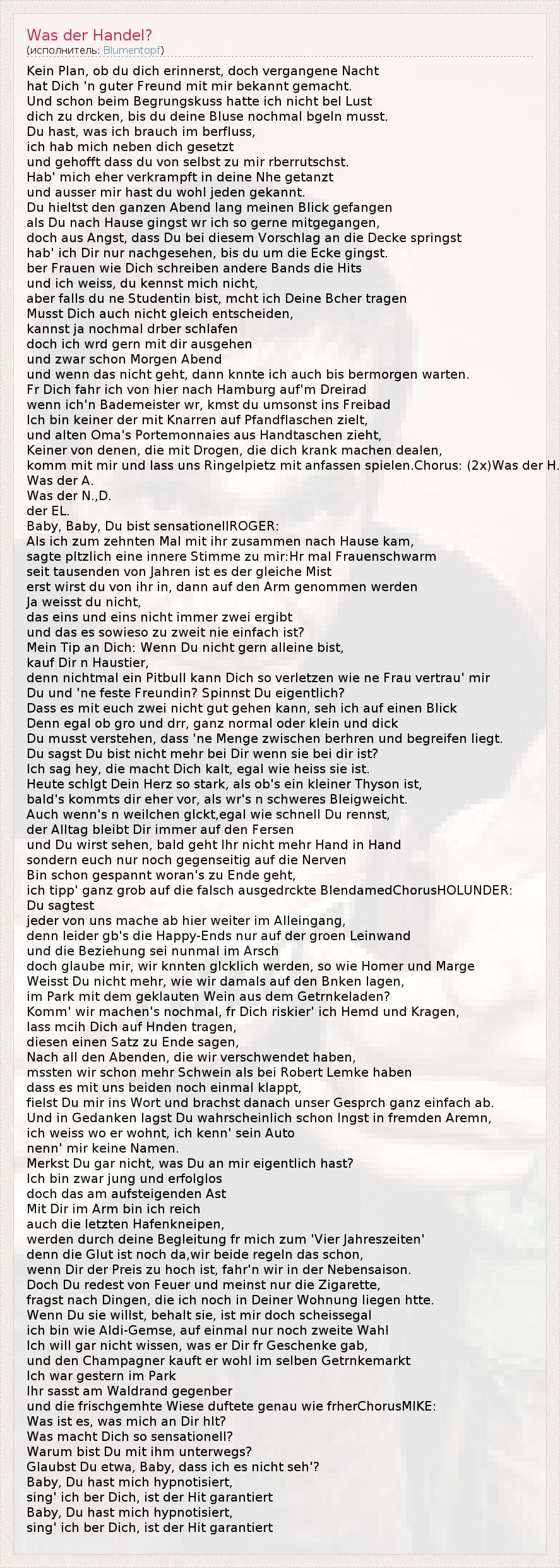 А как ты думаешь, о чем песня "Was der Handel?" ?