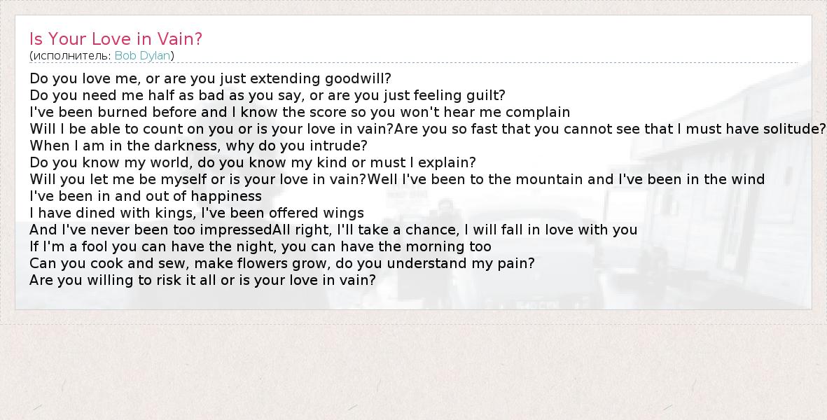 ГлавнаяИсполнителиBob DylanIs Your Love in Vain?