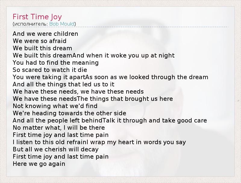 А как ты думаешь, о чем песня "First Time Joy" ?