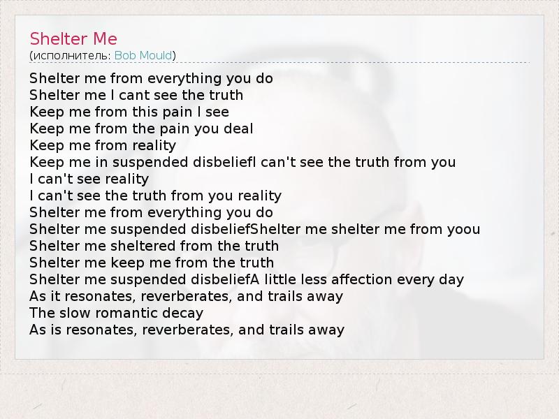 А как ты думаешь, о чем песня "Shelter Me" ?