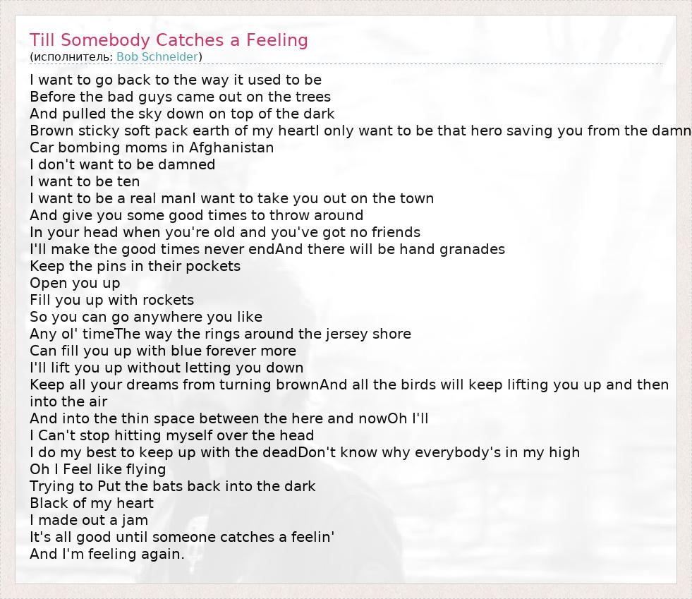 А как ты думаешь, о чем песня "Till Somebody Catches a Feeling" ?