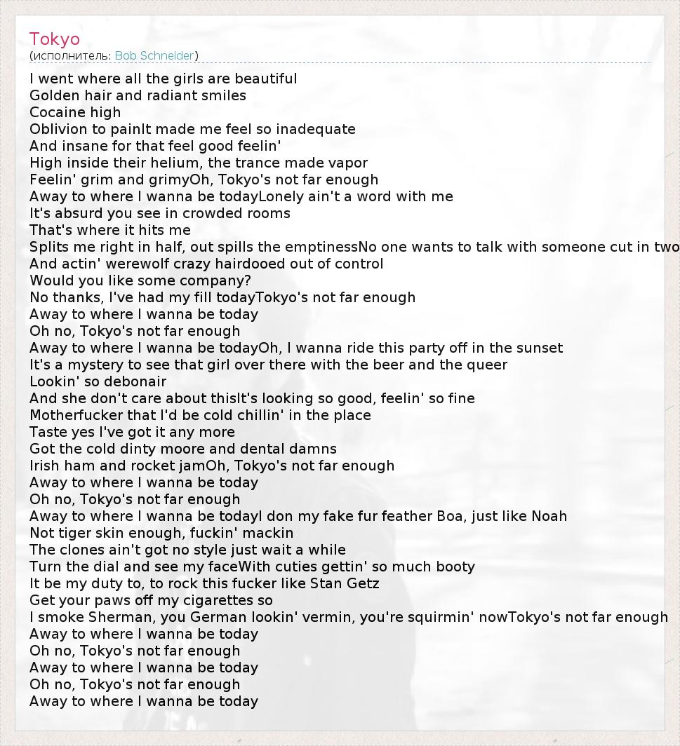 А как ты думаешь, о чем песня "Tokyo" ?