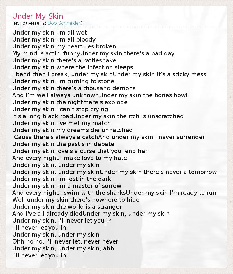 Under my skin, under my skinUnder my skin there's never a tomorrow