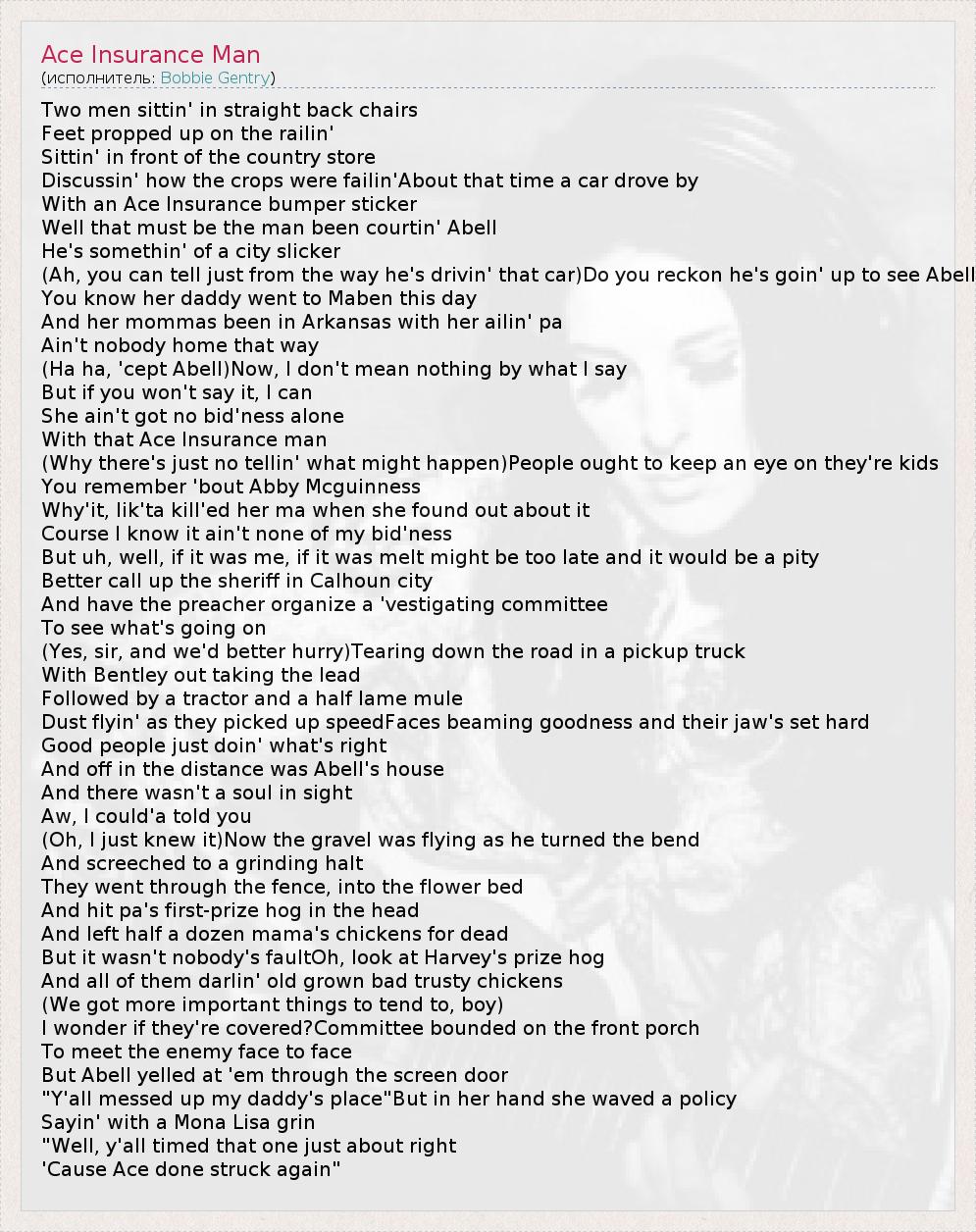 А как ты думаешь, о чем песня "Ace Insurance Man" ?