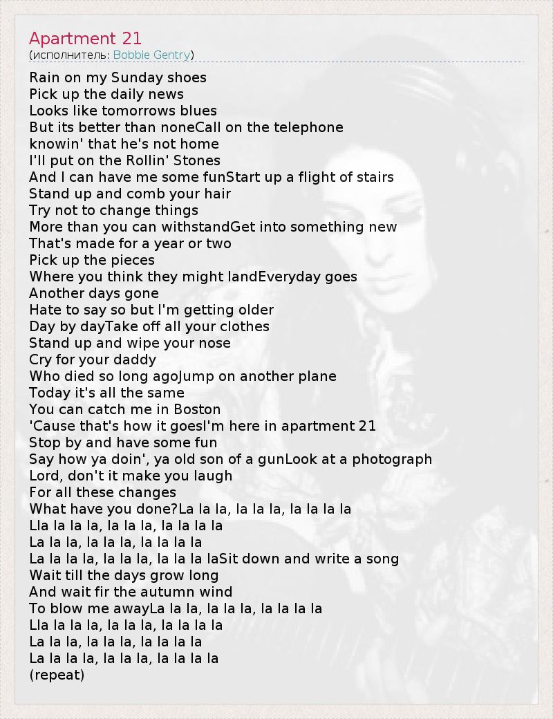 А как ты думаешь, о чем песня "Apartment 21" ?