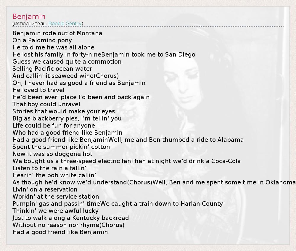 А как ты думаешь, о чем песня "Benjamin" ?