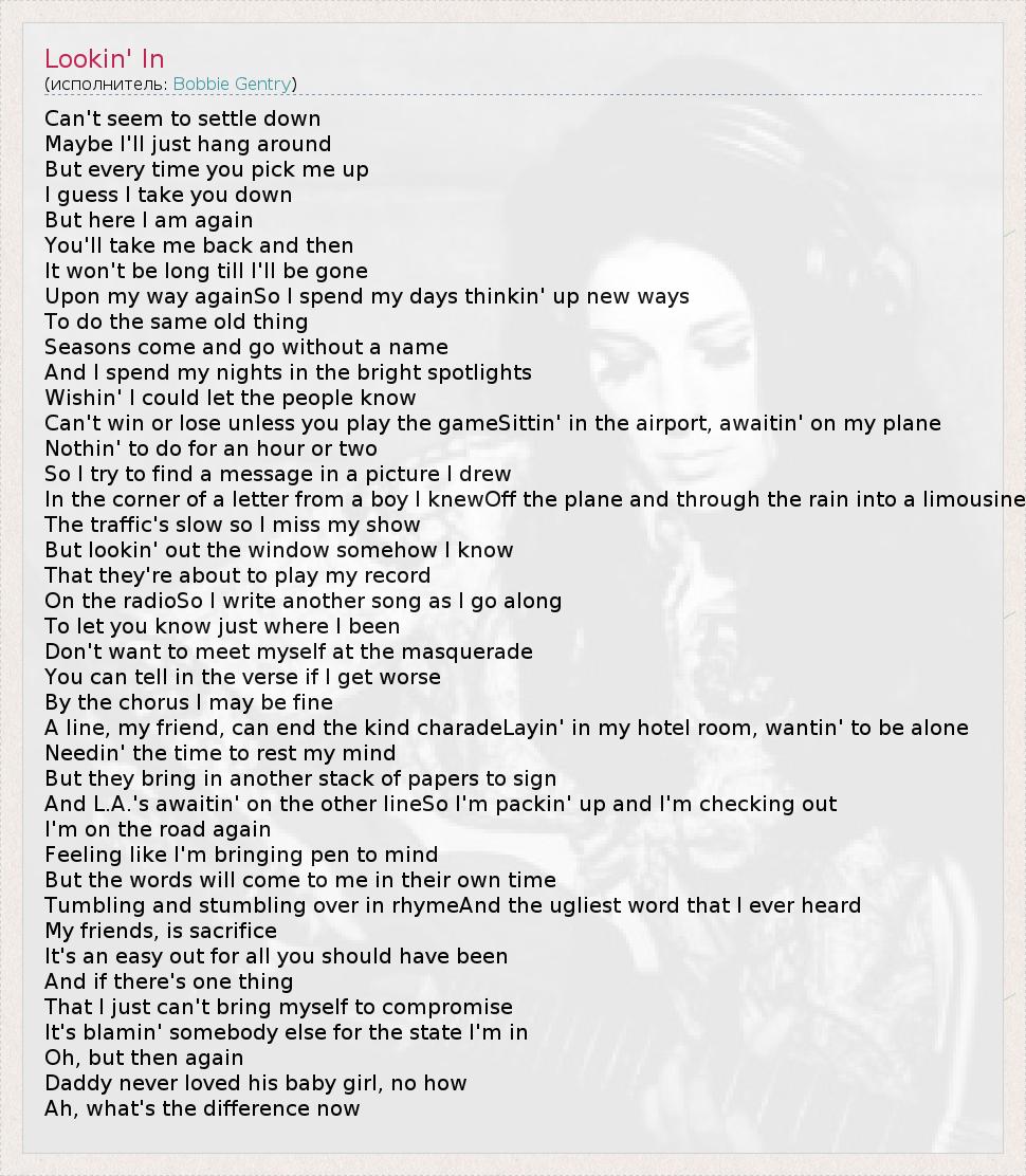 А как ты думаешь, о чем песня "Lookin' In" ?