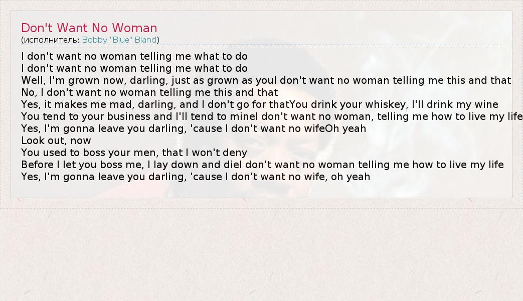 А как ты думаешь, о чем песня "Don't Want No Woman" ?