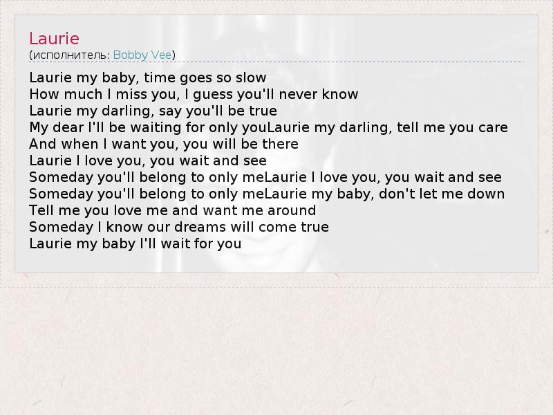 Someday you'll belong to only meLaurie my baby, don't let me down